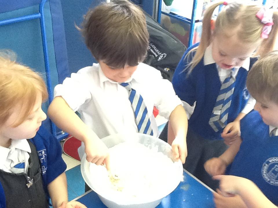 Ladybirds Class have been learning how to bake bread this morning. We have been reading 'The Giant Jam Sandwich' this week and we enjoyed being Bap the Baker when we were kneading the dough: "Thump it! Bump it! Bang it all about!"