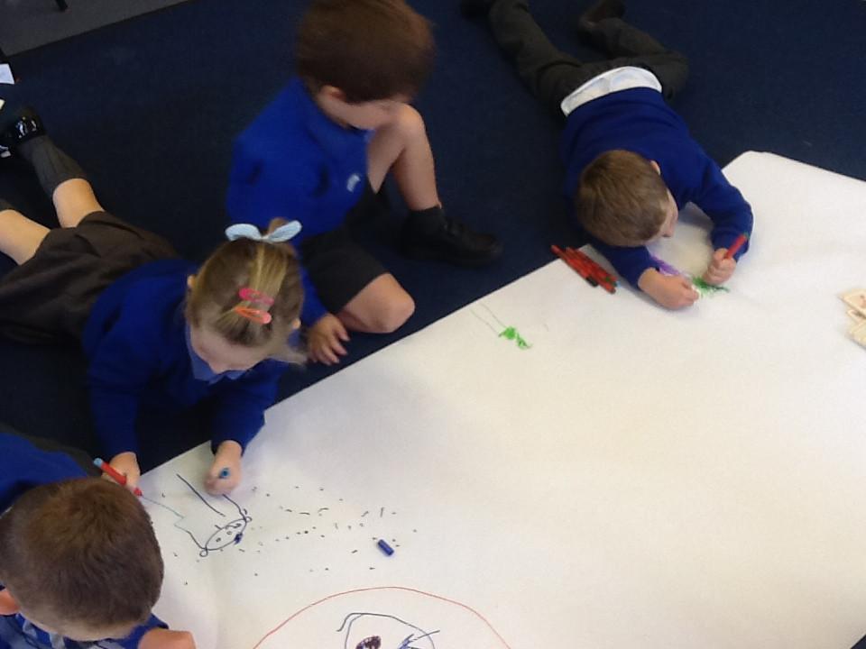 Children in Ladybirds have been talking about different parts of our bodies. We have sung songs, used actions, drawn pictures and are in the middle of creating a display for our classroom.
