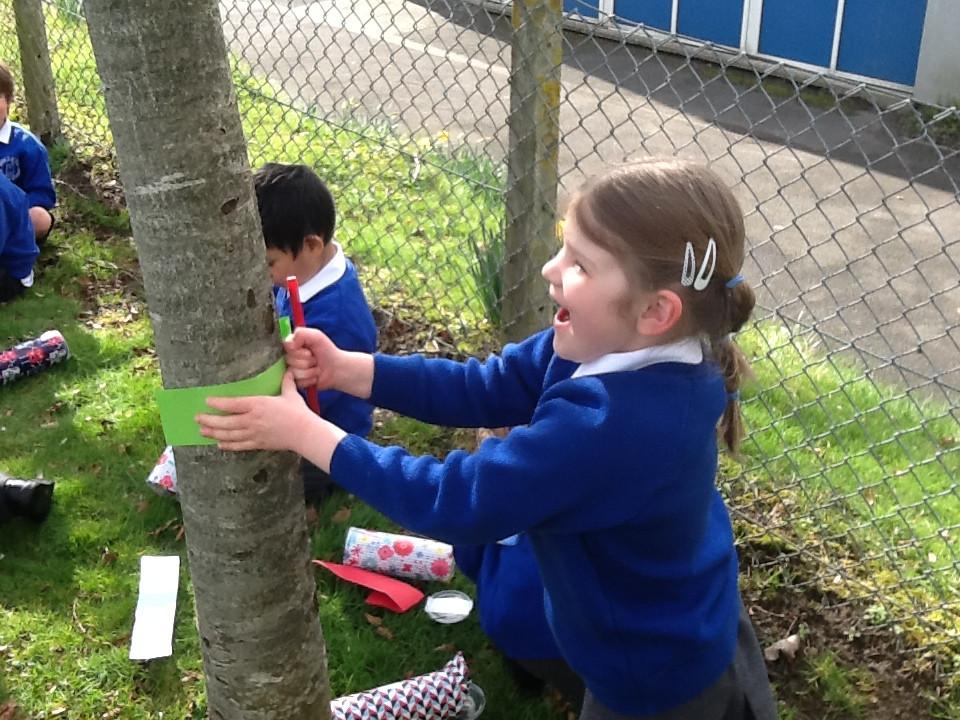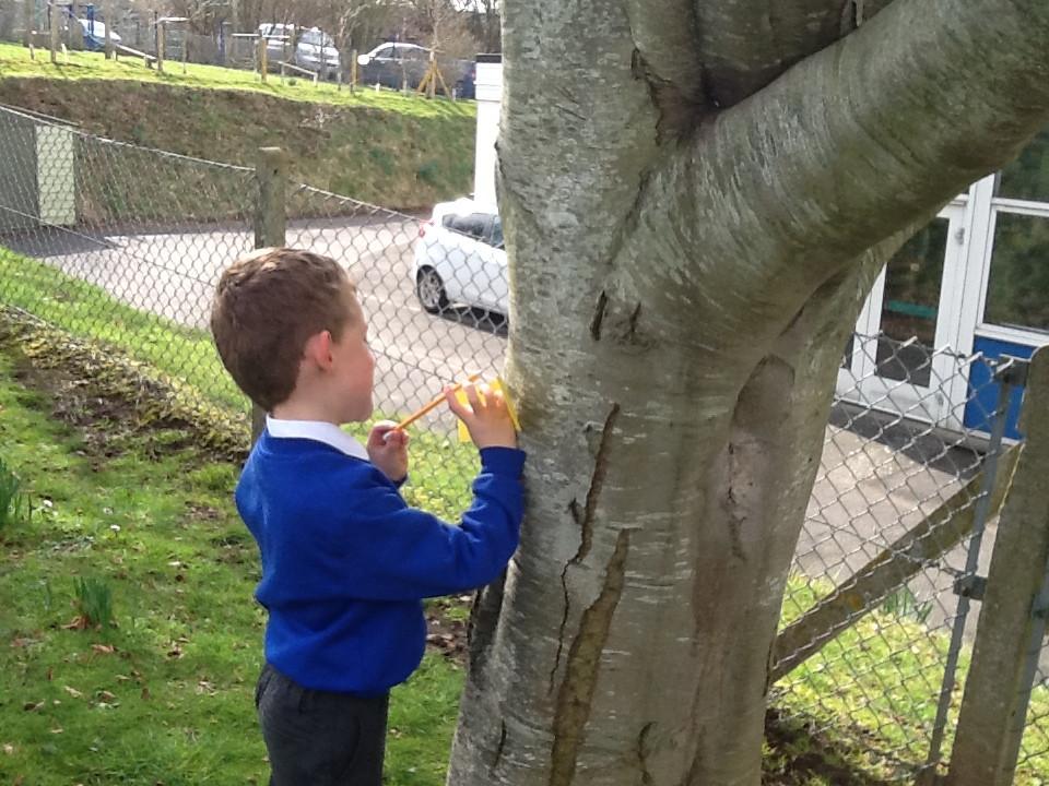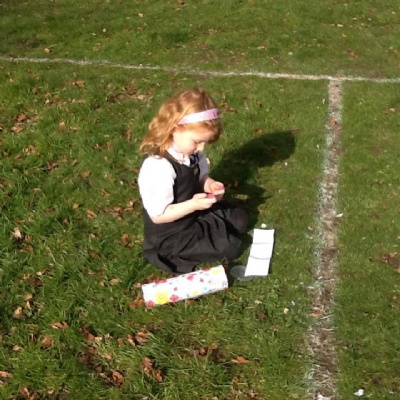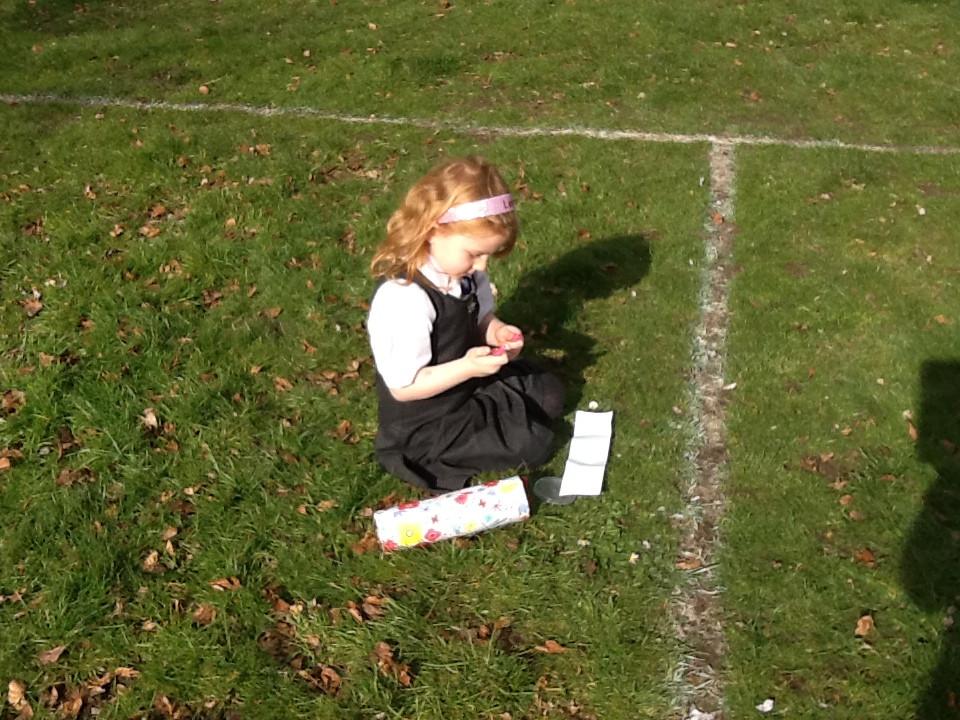 This afternoon, however, we ventured outside and enjoyed writing in the sunshine! We decided to go outside to find some flowers after one member of our class suggested putting some flowers in our Healthy Cafe role play area. When we came back from our walk, we had picked some beautiful daffodils and had also made good use of our Jotter Pods!