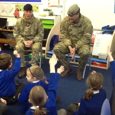 We were really excited to meet Andy and Alex today. They told us all about their job and we asked them loads of questions! We enjoyed trying on their hats and they even helped us to do some exercise.
